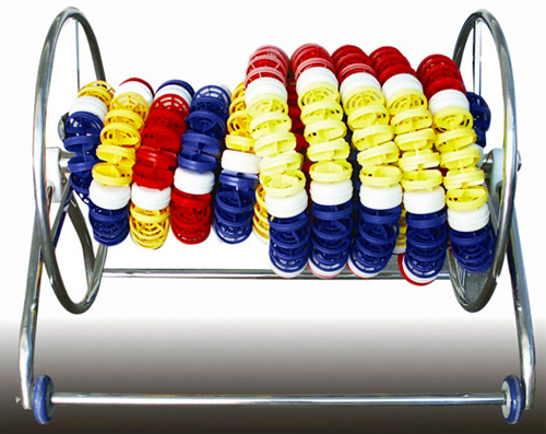 Используется для хранения разделительных волногасящих дорожек (разделительных шнуров) и комплектов разметки для водного поло. Вместимость – 50 м дорожки с Ø турбинок 150 мм, 100 м дорожки с Ø турбинок 110 мм или 150 м поплавковых дорожек. Тележка оснащена колесами для удобства транспортировки. Изготовлена из стали AISI 304. Конструкция легкоуправляемая и обеспечивает быстрый доступ к волногасящим линиям. Размер 181х107х129 см, Ø катушки – 96 см.