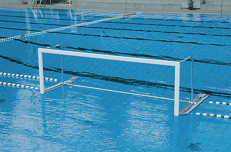 Ворота для ватерполо соответствуют правилам FINA и подходят для проведения официальных соревнований. Размер 300х90 см (для бассейнов глубиной не менее 150 см). Стойки ворот и перекладина изготовлены из прямоугольного профиля 80x40 мм и окрашены в белый цвет. Каркас изготовлен из алюминия. Особенностью модели является возможность складывания, что значительно снижает транспортные расходы и делает хранение максимально компактным. Ворота исключительно устойчивы в воде за счет широких боковых поплавков. Ворота оснащены креплениями для сетки и для боковых дорожек игрового поля. Именно эта модель ворот для водного поло использовалась для проведения соревнований на Олимпийских Играх 1980 года в Москве. В комплекте 1 пара ворот без сеток!