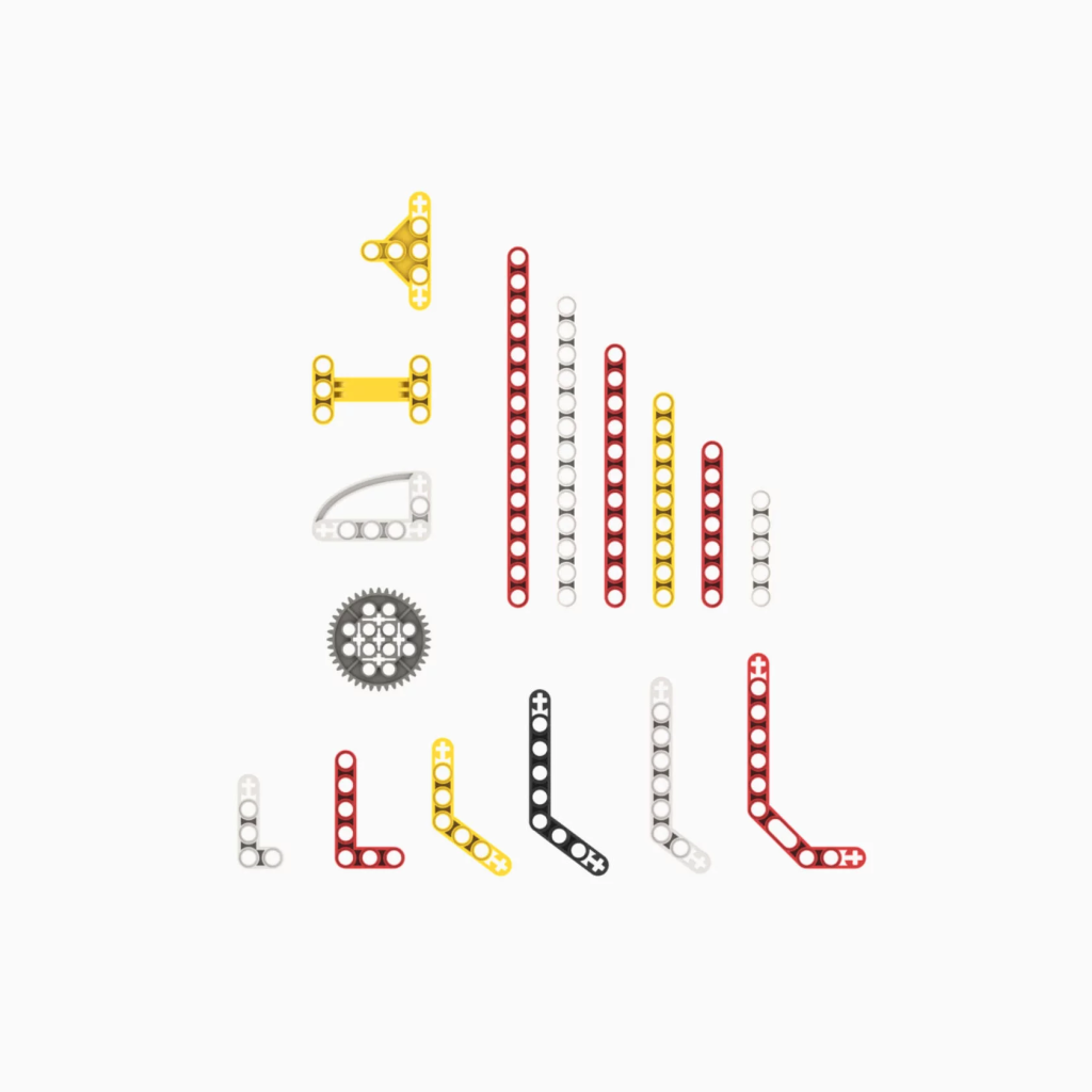В комплект входят 52 детали, среди которых балки и шестерни. Набор пластика №3 можно использовать как комплект запасных частей к набору R:ED Х (MAX, EDU, EDU+).